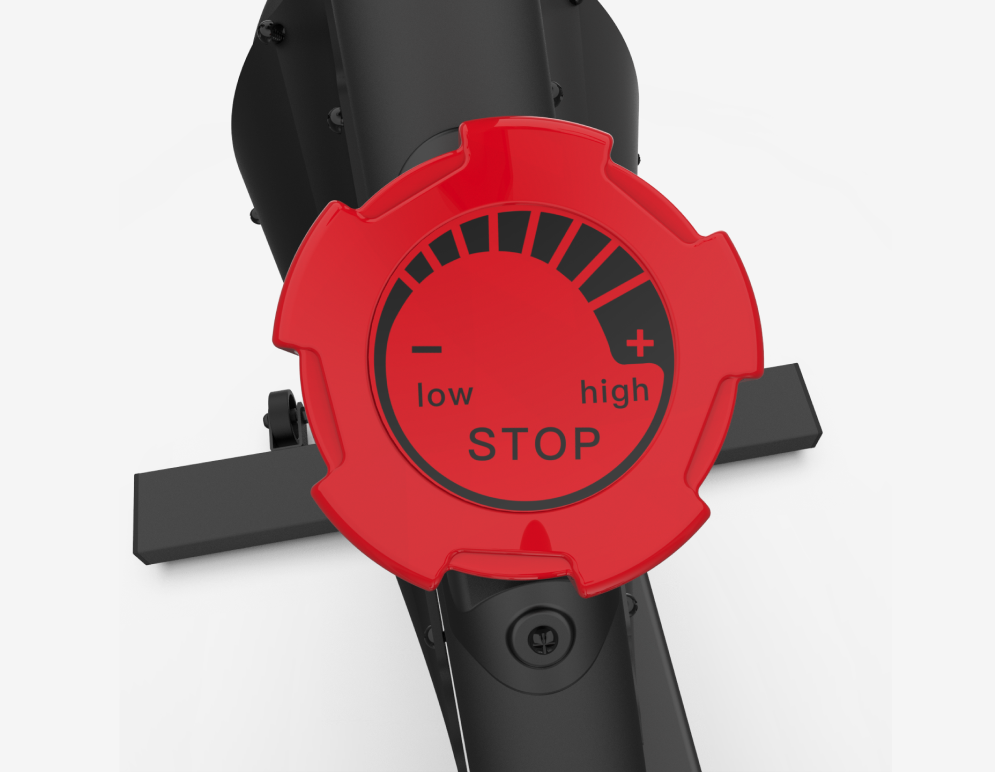 Resistance can be adjusted using the adjustment knob on the body. Turning it clockwise increases resistance, while turning it